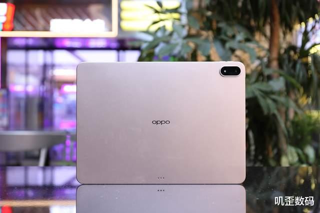 机身背部,我们所体验的这款OPPO Pad 4 Pro星河银配色版本在设计上对比上一代是外观大变,摄像头的位置调整在了左上角,这样一来也可以让机身设计更简约,配合AG磨砂机身,手感会更舒服一些。