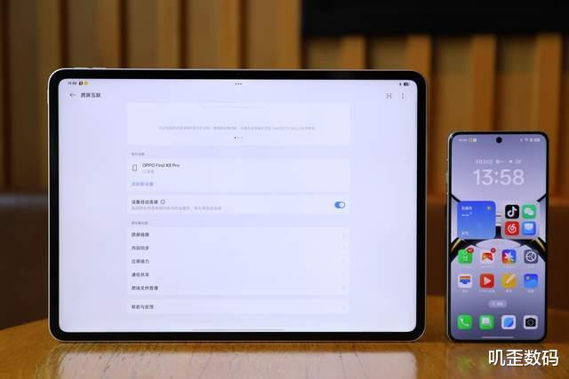如果你使用的是OPPO手机,那么也可以使用跨屏互联、内容镜像、应用接力、通信共享等功能。我们以跨屏互联为例,手机与平板连接之后,可以在平板上操作手机,查看消息或者接打电话,再也不用担心错过重要来电了。